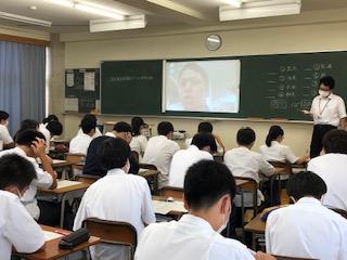 本日の7限目、1年生はZoomを使って、2学期の探究活動についての説明が北村先生よりありました。コロナのこともあり、学年全員が1カ所に集まるのは難しくなっていますが、Zoomを使えば、各教室で確実に説明を受けることができます。生徒は配布されたプリントを見ながら先生の話を聞いて、これからの探究活動の進み方を確認していました。