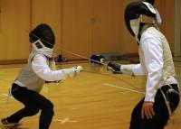 今年のフェンシング部は新たに7人のプレーヤーを迎え入れ、例年よりも活気づいた雰囲気となりました。普段は足腰を強化するフットワークの練習を行い、大会前になるとプレーヤー同士で練習試合を行っています。プレーヤー全員が初心者という中で、3年生を中心に1年生へのアドバイスをすることを通して、チームに一体感が生まれているようでした。
