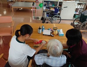 また、「公立つるぎ病院」では、医療系学科志望の生徒がリハビリテーションセンターの患者さんと楽しそうに会話している様子が見られました。薬剤室では薬剤師の業務や薬の管理体制などの説明を受け、粉末状の薬を個々に包装する機械の様子などを興味深げに見ていました。今後、病棟で患者さんの体温や血圧を測定させていただくことになっているようです。(しっかりね!!)