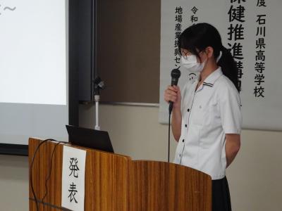 8月6日(火)に県地場産業振興センターで行われた「生徒保健推進講習会」において、本校から2つのグループが発表を行いました。