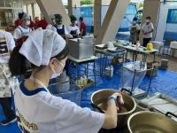 35Hはフライドポテトとホットドックを作っています。悪戦苦闘しながら、42人みんなで協力して調理しています。ぜひ買いに来てください。