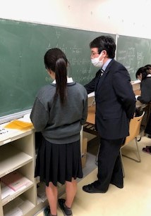 テスト期間1週間前になっていますが、週末に近づくにつれて、職員室の中やその周辺で質問をしている生徒さんの姿が増えていきます。先生方は質問大歓迎です!!