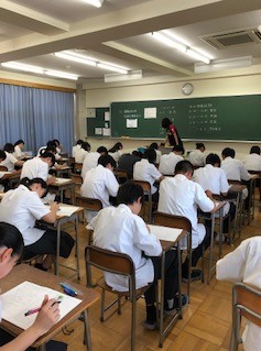 式の後は、夏季休業中の学習成果を確認するべく、1・2年生は課題試験に、3年生は校内模擬試験に取り組みました。先週までの教室内とは異なり、とっても真剣な顔つきで問題に取り組む生徒たちの姿を見ることができました。