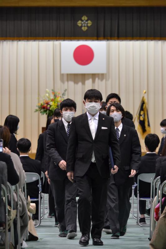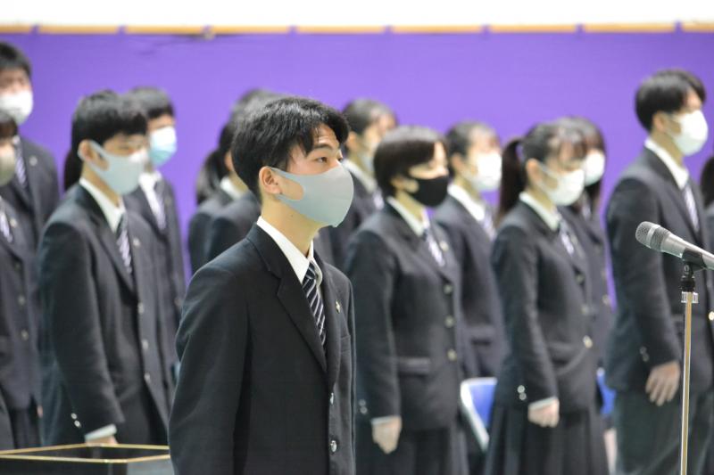 本日挙行された卒業式の様子をお知らせします。本校は新型コロナウイルス感染症を予防するため、「保護者の参加は1家族1名とする(⇒座席間隔を大きくとる+式の様子をLive配信する)」「生徒は呼名時の返事をしない」「校歌・蛍の光などはCDを流して各人の心の中で歌う」「在校生の参加は代表者のみとする」などの対応をとり実施しました。34H荒瀬友希さんが307名の卒業生の総代として卒業証書を受け取り、26H石川裟紅良さんが在校生代表として送辞を、38H稲田匠馬さんが卒業生代表として答辞をよんでおります。ご祝辞をいただきました井波秀俊PTA会長様、式にご列席いただきましたPTA役員の方々、そして卒業生の保護者の皆様方、本当にありがとうございました。