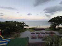 おはようございます。今朝は朝食を食べた後、A隊とB隊に分かれ、それぞれ沖縄美ら海水族館およびマリン・文化体験に出発です。午前と午後で交替し、同じ活動を行います。現地の天気は曇り、過ごしやすい気候です。