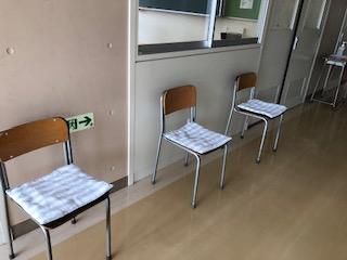 今回の保護者懇談はコロナ禍ということもあり、ご来校いただく際には健康チェックをお願いしています。教室内の面談場所には、保護者と担任の間にアクリル板が設置されています。仕切りがあると隔たりを感じがちですが、ぜひ、コロナ禍を乗り越えて、がっちりと繋がりを築いていただきたいと思います。