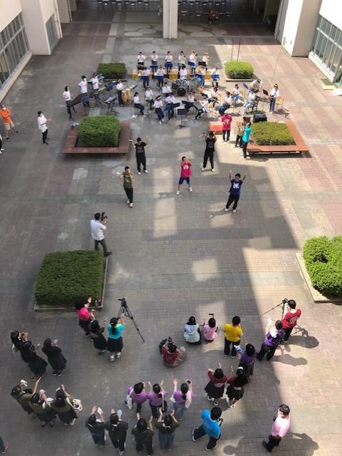 17Hステージ発表直前とダンス中の様子です。昨日一日のみの練習時間という限られた条件でしたが、みなさん頑張ってくれました。楽しい思い出となったことでしょう。