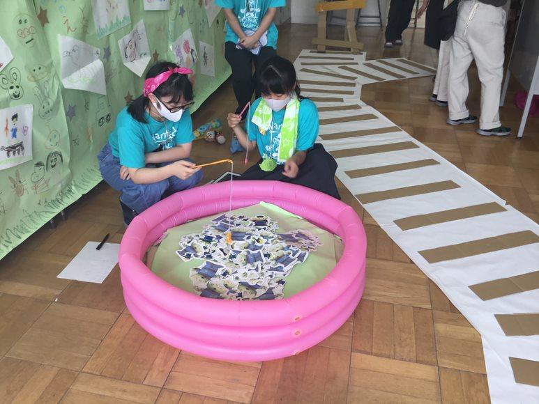 当日はカラフルな室内は多くの生徒でにぎわい、催事を運営する側も訪れた側もとても楽しそうでした。校舎内で「運命の人ゲーム」の際に使うキャラクターを首から提げている人をたくさん見かけ、私も嬉しい気持ちになりました。