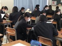 今日の1年生は結核・心臓検診のため、登校から1日、体操服で過ごしました。着替え時のコロナ感染を防ぐためです。授業も体操服で受けました。制服の時と少し違い、リラックスした様子も感じられます。