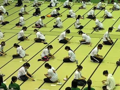 8月4日(水)14時から、和歌山県立体育館で「紀の国わかやま総文2021」小倉百人一首かるた部門の開会式と抽選会が行われました。本校からは1年清水さん、3年林さんが石川県の代表として参加しています。