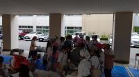 今日の午後、8月終わりに行われる紫錦祭(文化祭)ための衛生講習会が、視聴覚室で行われました。対象は模擬店を担当する3年生全員です。密を防ぐために、4クラスずつに分かれ、2回実施されました。