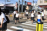 今朝は7:45から8:20までの登校時に、交差点付近等で自転車乗車マナーの指導を行いました。