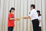 始業式に先立ち、表彰伝達式とALT新任式が行われました。