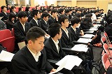 始業式では藤田耕造学校長から卒業生の合格体験記の紹介があり、最後に「本気で自分の持っている力を精一杯発揮せよ」と激励を受けました。