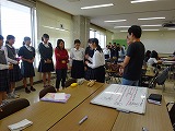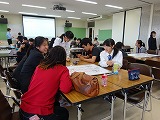 留学生の意見も聞きながら、中学生と高校生が協力し合ってアイディアを出し合っていました。