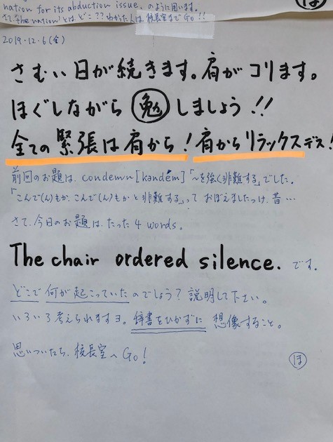錦高日記12月12日(木) ~3年生 神様のお告げ?!~