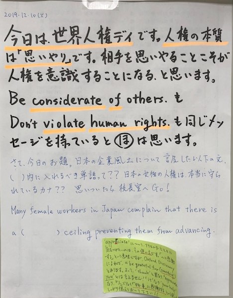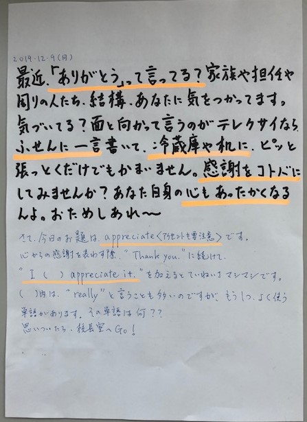 4月からの9ヶ月の間、様々な場面で活躍している生徒たち、学校のニュースなどをお届けしてきましたが、生徒たちの人間としての成長を感じさせてくれる姿、喜怒哀楽もある多様な姿など、多くを間近でみせてもらえたことに本当に感謝です。(教員やってきて良かったと思います。これが醍醐味ですかね。)2020年も皆様とこのような姿を共有していきたいと思います。