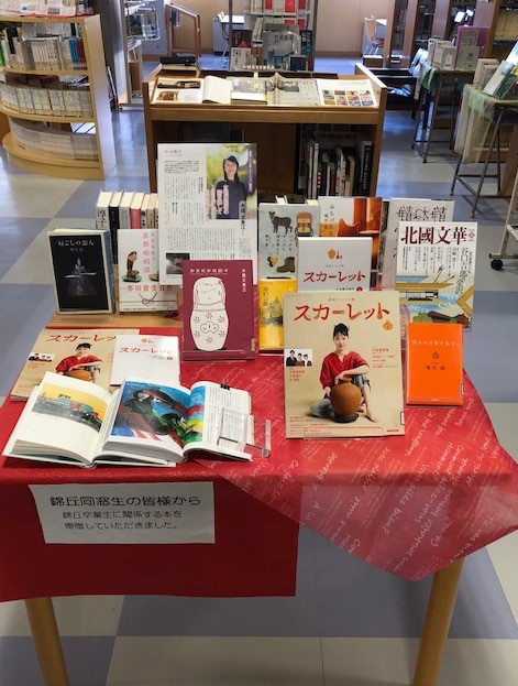 図書室の一画に、錦丘高校卒業生の方々に関係する本を集めた新しいコーナーがつくられました。錦丘高校同窓会からいただいたご寄付を使ってそろえた種々の本を展示中です。直木賞作家の唯川恵さん(1970年度卒)、脚本家として第一線で活躍されている水橋文美江さん(1981年度卒)、芥川賞を受賞されている本谷有希子さん(1997年度卒)の現代の「三文豪」の蔵書や、4月に金沢寺町にオープンした谷口吉郎・吉生記念金沢建築館でおなじみの世界的建築家の谷口吉郎さん(1917年石川県第二中学校入学)の蔵書や関連本などが揃っています。時間のあるときに、生徒たちに是非手にとって読んでもらいたいものばかりです。(すごい先輩たちがいらっしゃることを知っておいてほしいと思います。)