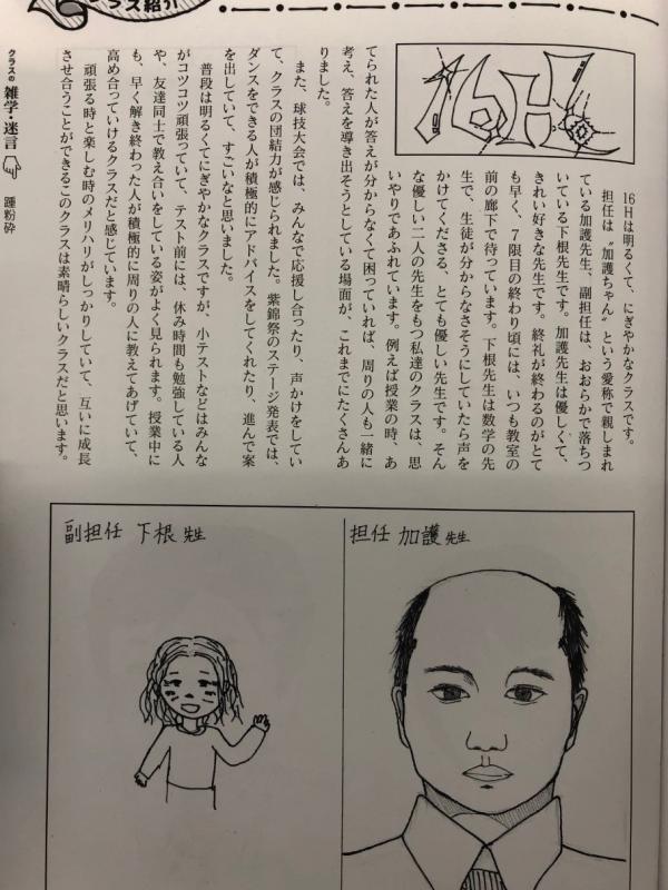 ◎16H(40名) ホーム担任:加護京一郎先生(地歴公民) 副担任:下根美代子先生(数学)