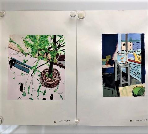 さて、今日は、お待ちかね、錦丘ギャラリーの第2回です。階段の踊り場では今もこれらの絵が皆さんを待っています。しばし、ご鑑賞あれ。