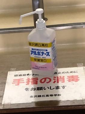 ・生徒玄関入口にアルコール消毒液を設置していますのでご利用ください。