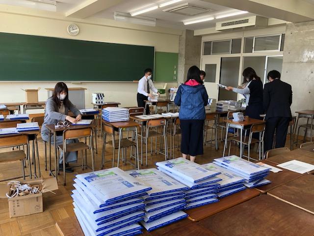 2学年の先生たちで、皆さんへの配付物を送る準備をしました。皆さんがどのように過ごしているか、心配しながらでしたが、和気藹々と楽しく作業できました。