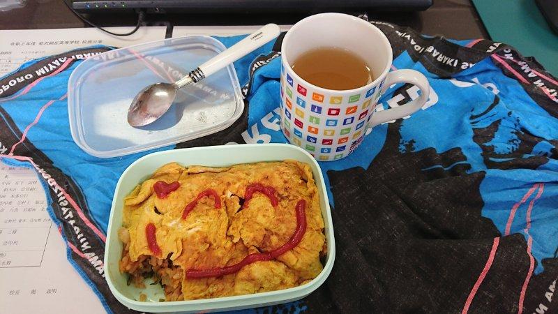 さて、この写真のタイトルは、「ある日のぼっちめし」です。この広いお「部屋」で、ほぼ毎日、「ぼっちめし」です。ほっとするひとときですが、数分で終わります。35年の長きにわたり、「おべんと」を作り続けてくれる人には、帰宅後、毎日、「ありがとう」は欠かしません。皆さんに会えず、コロナ対策に明け暮れ、心もすさんでいく日々ですが、この日のオムライスには救われました。(58才の「おべんと」なのに・・・ワロタ)