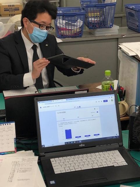 本日9:30に、3学年すべてにおいて「Google for Education」の学習支援アプリを使用したショートホームルームを行いました。先生方は定刻前にはパソコンでの準備を済ませ、すべてを試行錯誤で行ってきたために緊張した面持ちで、その時間を迎えておりました。ただ、寸前までGoogle classroomに参加できていない生徒の電話対応に追われた先生もいらっしゃいました。