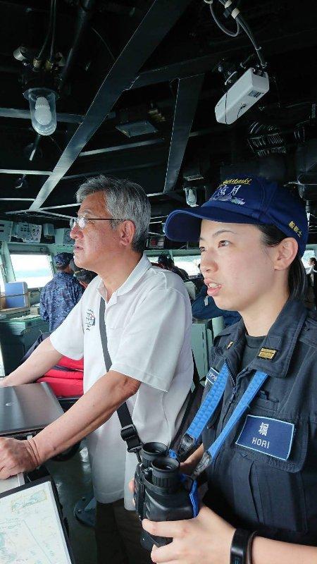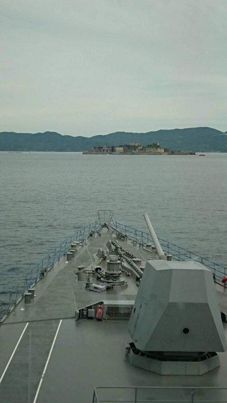 下の写真は、昨年、担当していた護衛艦「すずつき」に家族のみが乗船できる機会があって、佐世保基地から長崎造船所へ3時間の体験航海の際のものです。当時は総務士というポジションで、艦長の命令直下、大きなコンピュータ画面と双眼鏡による目視を元に、操舵担当者や機関士に指令を出す、要の任務に就いていました。艦橋での2ショットと主砲を経て軍艦島が見える光景です。艦長室でいただいた海軍カレーも最高でしたよ。自衛隊(陸海空問わず)を語り出したら止まりません。今日はここまで。ではでは。CU ASAP!
