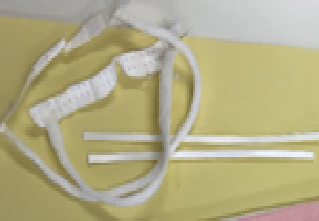 マスクをつくってみました。使用済みの使い捨てマスクから再利用するのは、もうお店に品切れになっているマスクゴムとワイヤーです。