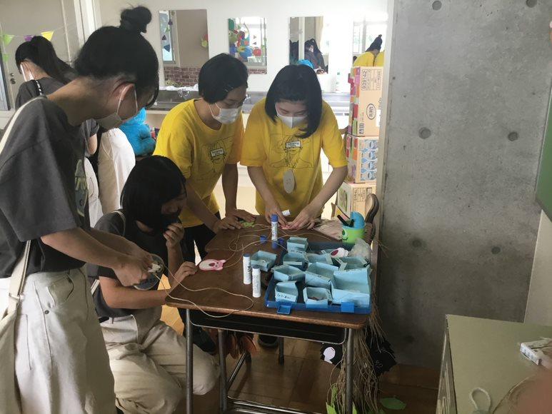 前日準備から気合十分の生徒たちはすごい勢いで教室の中に「ストーリー」を作り上げていきました。宝探しのスペースではどうやって隠す場所を増やすか工夫したり、ゲームや装飾に使うキャラクターのシルエットやイラストを切り抜いたり。