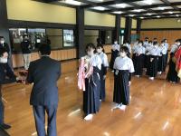 昨日の日曜日、弓道部にとって今年度初めての大会となる女子の春季大会が武道館で行われました。新型コロナウイルス感染症感染拡大防止のため,無観客,参加校を午前グループと午後グループに分けるなど人数を制限した中での実施です。