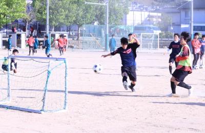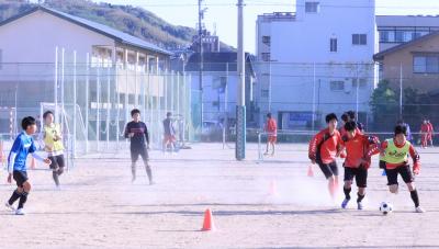 今年のサッカー部は新たに17人のプレーヤーと女子マネージャー1人を迎え入れました。日差しが照りつけ風も強く吹く中での練習でしたが、相手の動きを見ての素早いパスと力強いシュート姿を通して、プレーヤーの生き生きとした表情を感じることができました。