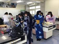 写真撮影の後、法利先生から浴衣のたたみ方を教えてもらい、今日の実習は終了です。明日は家庭部2年生が実習します。