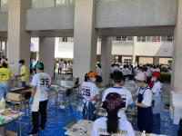 35Hはフライドポテトとホットドックを作っています。悪戦苦闘しながら、42人みんなで協力して調理しています。ぜひ買いに来てください。