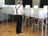 生徒たちは事前に、「消費税・所得税とも上げる」「所得税のみ上げる」「消費税のみ上げる」「消費税、所得税とも上げない」のテーマを掲げた8つの政党のマニフェストに目を通して投票を行いました。投票用紙を渡たす係や投票立会人、開票作業などは1年生の選挙管理委員が勤めます。1年生の担任や校長先生も1票を投じました。