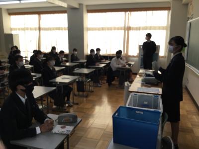 この日は生徒会執行部の3人が中学3年生の教室を訪れ、高校の部活動や勉強の仕方などを説明しました。中学生は高校生の話を熱心に聞き、どんな質問をしようか考えていました。