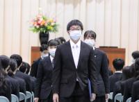 ホーム担任の呼名の後、34H松崎亮太さんが310名の卒業生の総代として卒業証書を受け取りました。25H野田蓮さんが在校生代表として送辞を、36H石川裟紅良さんが卒業生代表として答辞をよんでおります。ご祝辞をいただきました井波秀俊PTA会長様、式にご列席いただきましたPTA役員の方々、そして卒業生の保護者の皆様方、今日は本当にありがとうございました。