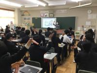 本校では、高校の教員が錦丘中学の生徒を対象として、高校での学習を少しだけ体験する中高接続授業(ブリッジ授業)を行っています。今回は、寺井先生が地理の授業として、バングラデシュの縫製工場崩落事件から考えるグローバル課題を題材にしました。最後は、SDGsの17ゴールについて、ダイヤモンドランキングで生徒それぞれの優先順位を考えさせ、お互いにその理由を意見交換させていました。