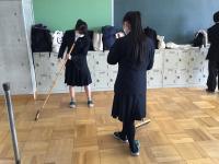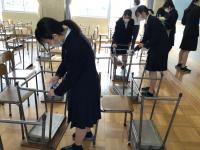 来週の3月8日(火)と9日(水)に高校入試が実施されます。今日の午後、在校生全員で校舎の掃除を行い、受験会場を設営しました。受験生が心地良く試験に臨んでもらえるように、生徒たちは、教室のすみずみまで気を配ってきれいにしてくれていました。椅子や机をひっくり返して、脚のゴミを雑巾で丁寧に拭く生徒、黒板の汚れを黒板消しで力をこめて消す生徒。教室の本棚やプロジェクタなどは使わない教室に移動させます。各自の机の中だけでなく、ロッカーなどに入れてある私物もすべて持ち帰ります。床のゴミを取った後、設営図通りに正確に机・イスを配置してくれました。