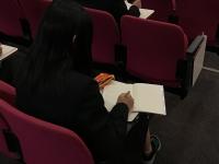 その後の同窓会入会式では、同窓会副会長の木綿様よりお祝いの言葉ととともに、同窓会入会の意味や幹事についての説明があり、入会する3年生の顔が心なしか誇らしげに感じました。