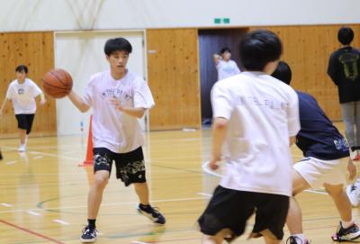 男子バスケットボール部は11月10日からの新人大会に向け、日々練習に取り組んでいます。部長の24H山城侑大さんは「今度の新人戦では、1回戦に金沢二水高校と、そして2回戦は強豪校の北陸学院高校と対戦します。特に金沢二水高校には練習試合で1度負けているので、リベンジに向け全員が闘志を燃やしています。まずはベスト16入りを目指して頑張りたいです」と熱く意気込みを語ってくれました。