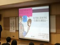 今回の講演は子どもたちに迫る危険の実態を正しく知らせ、トラブルを未然に防ぐための啓発活動の一つである「e-ネットキャラバン」の一環として行われ、ネット依存、ネットいじめ、誘い出し、なりすまし、個人情報漏洩といった動画を視聴後、各内容について解説されました。
