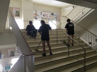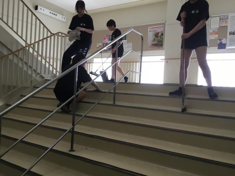 紫錦祭翌日、女子バレーボール部の皆さんが、汚れが目立つ中央階段の清掃をしてくれました✨その素敵な姿勢に感動✨ありがとうございます・・・感謝