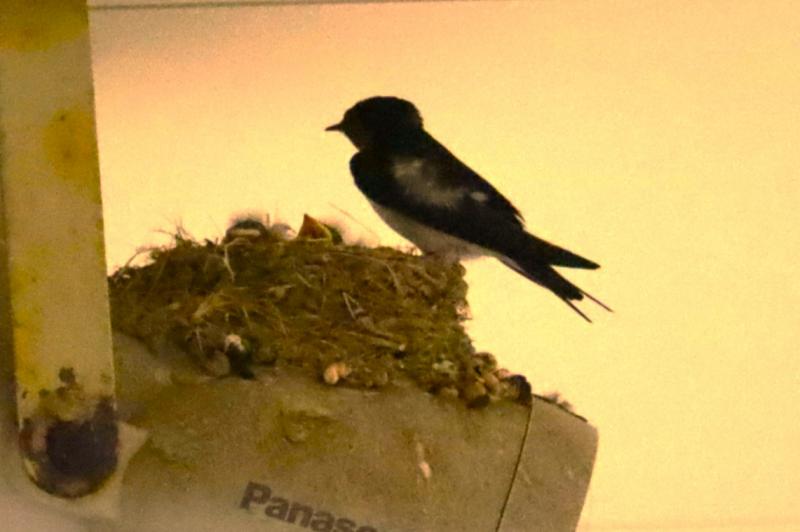 生徒玄関の軒先に作られたツバメの巣で、ついにヒナが産まれました。親鳥が交替で餌を与えている様子が観察できます。