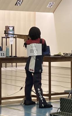 本校からは、2年生の田中莉乃さんが個人戦・ビームライフル女子の部に出場しました。30分の間に40発、的を狙ってを撃ち、その合計点数で順位を争う競技です。