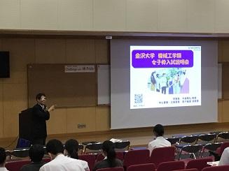 9月28日(木)放課後に、金沢大学理工学域機械工学類で実施される女子枠特別入試制度について、説明会を実施しました。生徒、保護者、教職員を含め、およそ30名が参加し、熱心に聴いていました。