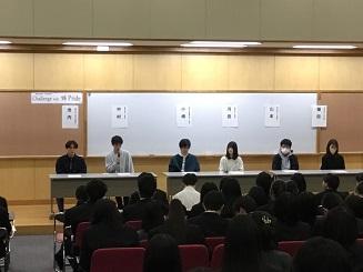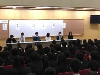 6限の時間帯は1年生、7限の時間帯は2年生に向けて、後輩へアドバイスをもらいました。1,2年次の過ごし方や受験時の勉強量、志望校を決定した経緯など、先輩たちの高校時代の過ごし方を知ることができました。これから進路について考えたり受験に臨むにあたって大いに参考になったと思います。