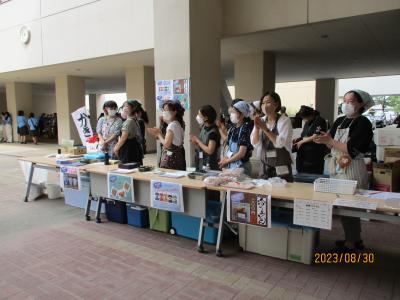 紫錦祭2日目(8月30日)、PTA役員、常任委員の皆様にもご協力いただき、冷やしうどんやフローズンゼリー等の食品販売をしていただきました。また、卒業生に寄付してもらった制服を販売する制服リサイクルも実施されました。