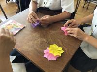 8月終わりに行われる、文化祭(紫錦祭)に向けて、クラスの準備や部活動の練習が始まっています。コロナ感染対策のため、今年度も参加できるのは本校生徒のみです。たくさんの制約がある中、生徒たちは、密にならないように準備や練習を工夫して行っています。劇の練習をする演劇部、装飾用の段ボールに色を塗るクラス、ダンスの練習をしている生徒、室内では、文化祭で使用する御園棚を使ってお手前のお稽古をする茶道部の姿も。どの生徒もみんな、いきいきと活動していました。